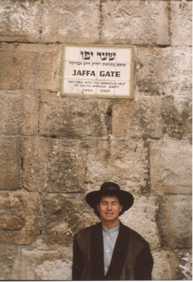 This photo of me taken in late fall 1989 in Jerusalem standing below a sign on Jaffa Gate that reads, “RESTORED WITH THE GENEROUS HELP OF SOUTH AFRICAN JEWRY 1969” was not the first time I visited the Holy City of the 3 major western religions; and if you didn’t know me, you wouldn’t be able to tell me apart from an ultra orthodox Jewish-Black Hatter whose most important job for De Beers is getting the inside scoop of infighting amongst non-religious Jewish people who never come close to making it into the top echelons of De Beers who like things just the way they are with their herd acting like sheep who don’t however have the bad habit of backbiting one another when not stabbing each other in the back.